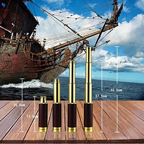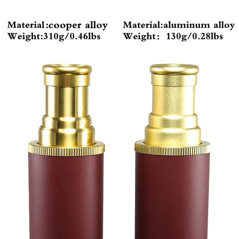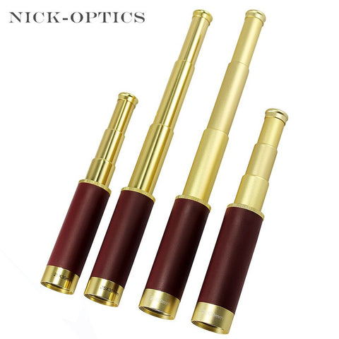 See the night sky in stunning clarity with this high quality Portable Telescope. Its 30mm objective diameter gives it a magnification of 25x, a 270 ft field of view at 1000 yds, and a minimum focusing distance of 6.5 ft. With its sliding focus and 1.2mm exit pupil diameter, you can capture even the most distant objects. This handsome golden telescope is also conveniently compact - extended to 33cm and contracted to 135mm.